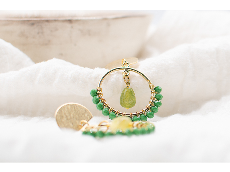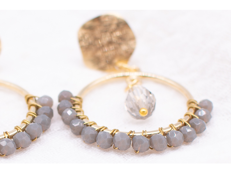 Gold plated hoops wrapped with crystals and finished off with either gold plated stainless steel hooks / textured gold plated stainless steel studs or half moon stainless steel studs.